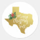 Frohe Weihnachten Y'all Aufkleber mit einem goldenen Imitat Folie Texas Staat und Aquarell heilige Beeren mit moderner Typografie.