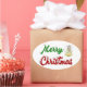 Sticker mit Frohen Weihnachten in 3D grün und rot Text und ein Engel. Aufkleber sind in verschiedenen Formen erhältlich.