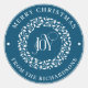 Frohe Weihnachts Blue Round White Holly Wreath Joy Runder Aufkleber