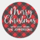 Personalisieren Sie diesen roten und schwarzen Büffel karierten Weihnachtsaufkleber für Ihre Feiertage Leckereien und Geschenke. Entworfen für Sie von BlackBerry Boulevard.