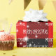 Glühende weiße Sterne und fröhlicher Weihnachtstext auf rot und schwarz Büffel kariert. Text kann geändert werden.
