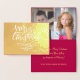Personalisierte klassische, elegante und moderne gefaltete Weißgold und Magenta / Kardinal Rot Winter Frohe Festtage Goldfolie mit handgeschriebenem gebürstetem Kalligraphieskript auf der Vorderseite und Ihre beiden benutzerdefinierten Fotos und Grußtext innen. Personalisieren Sie es mit Ihrem Foto, Unterschrift und Text!