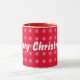 Frohe Weihnachten Weiße Schneeflocken roten Hintergrund auf einer Tasse.