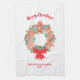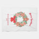 Dieses lustige und festliche Küchentuch ist mit einer Aquarell von einem festlichen Kranz von Weihnachtskeksen dekoriert.