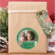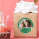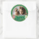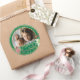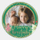 Frohe Weihnachts Custom Foto auf Green & Gold Runder Aufkleber