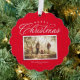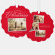 Frohe Weihnachts elegante vier Foto Collage Rot Ornament Karte