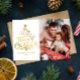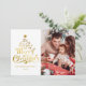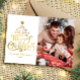Frohe Weihnachts Familie Foto Holiday Card Wir wünschen Ihnen ein frohes Weihnachtsfest! Diese Urlaubsfotokarte enthält eine klassische Nachricht in einer lustigen Weihnachtsbaumform auf einem roten Hintergrund. Mit einem Foto vorne und einem auf der Rückseite ist es eine großartige Möglichkeit, Freunden und Familie Weihnachtsjubeln zu schenken. Die spielerische Typbehandlung ist wie ein Weihnachtsbaum geformt.