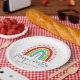 Fröhliche Weihnachts-Feierliche Regenbogen Candy Cane Herz Weihnachts-Party Papier Teller bietet einen lustigen und farbenfrohen whimsical Regenbogen rund um einen Bonbonstock und umgeben von rosa Liebe Herzen. Unten ist der Text Frohe Weihnachten in modernen schwarzen Hand geschrieben Skript. Personalisiert mit Ihrem Familiennamen, indem Sie den Text in der angegebenen Textbox bearbeiten. Weitere Artikel in dieser Sammlung von Evco Holidays anzeigen https://www.zazzle.com/store/evcoholidays
