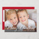 Vergnügen Familienurlaub-Karte mit "Frohe Weihnachten" in einem stilvollen, weißen Drehbuch über Ihrem Foto auf der Vorderseite und zwei Kunstwerke von Ihren Kindern auf der Rückseite.