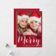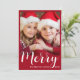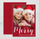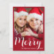 Elegante, saisonale rote Urlaubskarte mit Ihrem Foto, "Merry" in einem großen, stilvollen weißen Drehbuch und Ihrem Namen und Jahr.