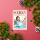 Frohe Weihnachts-Foto Rosa Folien Feiertagskarte