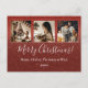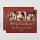 Frohe Weihnachten extravagantes Drehbuch 3 Foto Collage Urlaub Postkarte auf einem roten Imitat starren Glitzer Hintergrund. Fügen Sie Ihre Lieblings-Familienfotos zu personalisieren. Fügen Sie Ihre persönliche Nachricht auf der Rückseite der Karte hinzu.
