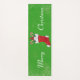 Diese Yogamatte ist grün mit einer Streuung von blassen Schneeflocken und einem rot-weißen Weihnachtsweih-Strumpf, der einen Gnom trägt, der einen roten spitzen Hut zwischen zwei Bonbons und Haufen heiliger Blätter trägt. Passen Sie den frohen Weihnachtstext mit den Vorlagen an.