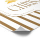 Klassische Weihnachtswandkunst mit "Frohe Weihnachten" mit goldener, heiliger Bogen-Illustration auf gestreiftem Gold und weißem Hintergrund. Perfekter Festdruck für elegante saisonale Dekoration.