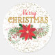 Dieser dekorative Weihnachtsaufkleber mit wunderschöner Poinsettia, umgeben von Laubäumen, goldenen Glitzer Konfetti und dem Textbild "Frohe Weihnachten" auf weißem Hintergrund. Verwenden Sie die Schaltfläche Anpassen, um die Hintergrundfarbe in eine beliebige Farbe zu ändern. Ideal für Ferienkarten oder Einladungen.
