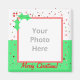 Ein heller und festlicher, grün, rot und weiß Foto Magnet für Urlaub. Fügen Sie Ihr Lieblings-Foto hinzu. In dem Text steht "Frohe Weihnachten!".