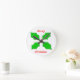 Diese phantastische Uhr verfügt über vier heilige Blätter mit roter Beere, um sie zu verbinden. Die Beere scheint im Licht zu glitzern und die Blätter haben eine 3D-Qualität. Der rote Text um den Heiligen liest Frohe Weihnachten.