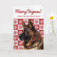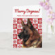 Niedlicher deutscher Schäferhund feiert Frohe Weihnachtskarte für den Hundefreund. Frohe Dogmas! Personalisieren Sie den Familiennamen und fügen Sie Ihren persönlichen Gruß auf der Innenseite der Karte hinzu.