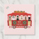 Niedliche Darstellung verschiedener französischer Bullhunde, die in einem Weihnachtswagen fahren. Ideal für Hundefreunde und französische Bulldog Hundeeltern während der Ferienzeit.