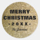 Funkelnd Imitate Glitzer rund um Aufkleber mit fett gedrucktem "Frohe Weihnachten" Text, einschließlich Jahr und individuelle Name.