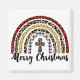 Fantastisches Regenbogendesign mit Leopardendruckdetails und Kreuz. Im Text steht "Frohe Weihnachten".