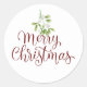 Frohe Weihnachts-Mistletoe Elegante-Script Runder Aufkleber