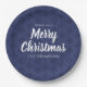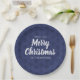 Frohe Weihnachts Navy Blue Simple Snowflake Muster Pappteller