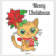 Frohe Weihnachts-Orange-Katze mit Poinsettia Aufkleber