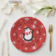 Frohe Weihnachts-Pinguin-Feier Papier Teller mit rotem Hintergrund und weißen Schneeflocken