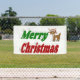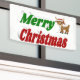 Banner mit Frohen Weihnachten in 3D grün und rot Text und ein Rentier. Erhältlich in verschiedenen Größen für innen und außen.
