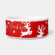 Gold Frohe Weihnachten und Rentiere auf einem roten Hintergrund.