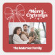 Frohe Weihnachts-Rot-Bogen-weißes Foto Quadratischer Aufkleber