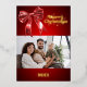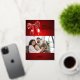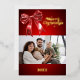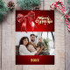 Ein roter Farbverlauf und ein Bogen. Text und Foto vorne. Echte Goldfolie auf der Vorderseite. Ihr Text und Ihre Namen auf der Rückseite. Frohe Weihnachten ist mit einem Retro-Schriftart geschrieben.