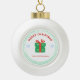 Frohe Weihnachts-Rot-Text-Geschenkboxen auf weiß Keramik Kugel-Ornament