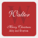 Frohe Weihnachts Rot und Weiß Custom Monogram Quadratischer Aufkleber