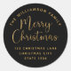 Frohe Weihnachts Schwarz Gold Klassik Round Sticker. Imitate Gold Glitzer Frohe Weihnachten mit Ihrem personalisierten Namen und Adresse Text.
