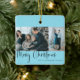 Frohe Weihnachts-Script 2 Foto Collage Blue Keramikornament