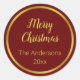 Frohe Weihnachts-Script dunkelrot und Gold Name Ja Runder Aufkleber