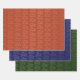 Ein Set von 3 Blättern mit der Phrase "Frohe Weihnachten" in Skript in ein gefliestes Muster geschrieben. Die Farben sind Gold auf Rot, Silber auf Blau und Kupfer auf Grün.