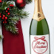 Chic, moderne kursive Schrift über ein herrliches rotes Band und Bogen liest MERRY CHRISTMAS in eleganter kursiver Typografie. Ein gebundener Bogen ist super trendig für 2025 Feiertag Champagner Flaschen Etiketten. Personalisieren Sie mit Ihrem Familiennamen oder Firmennamen im Zentrum.