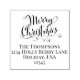 Dieses Design zeichnet sich durch ein fröhliches Weihnachtsfest, fröhliche Weihnachten, Rücksendeadresse, perfekt für Ihren Urlaub Grußkarten, mit einer eleganten, kreativen eigenen Briefmarke, mit Kalligraphie-Skript, und Ihrem Familiennamen und Ihrer Adresse, eine einfache Typografie mit klassischem traditionellem Stil.