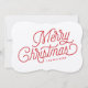 Hübsche Schriftzeichen mit den Worten "Frohe Weihnachten" schmücken diese schlichte, aber festliche, rot-weiße Weihnachtskarte, die kein Foto ist.