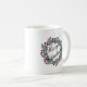 Was für eine hübsche Weihnachtsfeier Tasse. Liebe des weißen Hintergrunds und des Kranzes.