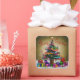 Frohe Weihnachtsklammer - Eine surrealistische Weihnachtslandschaft mit einem skurrilen Weihnachtsbaum, der in lebhaften Farben dekoriert ist. Umgeben vom Baum mit einer Vielzahl von Geschenken in glänzendem Papier, wie ein sanfter Schneefall fügt eine festliche Atmosphäre, einschließlich einer fröhlichen "frohe Weihnachten" im Hintergrund. Es kann als quadratischer Aufkleber erworben werden.