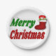 Frohe Weihnachts-Strumpf rot-grüne Typografie Pappteller