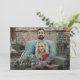 Elegantes Script Frohe Weihnachts Foto Holiday Card mit vollem blumigen Foto auf der Vorderseite. Klicken Sie auf die Schaltfläche Bearbeiten, um dieses Design mit Ihrem Foto und den Details anzupassen.
