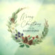 Ein Weihnachtsfenster mit einem grün grünen Kranz aus handgemalten Aquarellkiefern, Blätter, Zweigen und Winterbeeren und einem eleganten lässigen Drehbuch Sprichwort Frohe Weihnachten. (Platzierung Foto von Elina Fairytale auf Pexel. Bitte ersetzen Sie es mit Ihrem eigenen.)
