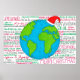 Dieses Poster wird mit einem handgezeichnet Globus mit einem festlichen Weihnachtshut gedruckt. Im Hintergrund steht das Sprichwort "Frohe Weihnachten" in verschiedenen Sprachen wie Englisch, Spanisch, Französisch, Russisch, Xhosa und mehr!