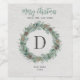 Frohe Weihnachts Winter Greenery Monogram Wreath Weinetikett