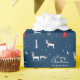 Dieses Weihnachtswinterwaldmuster ist eine niedliche, illustrierte Szene von Hirschen und Bäumen auf einem marineblau Hintergrund mit einer Textvorlage, um mit dem Namen oder Familiennamen Ihres Liebsten zu personalisieren.